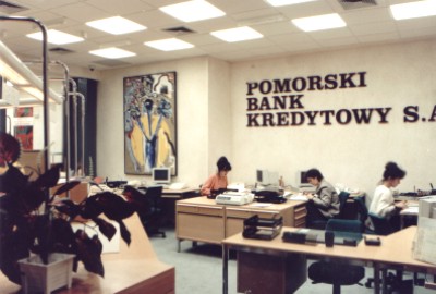 Pomorski Bank Kredytowy S.A. - Oddział w Zielonej Górze przy ulicy dr Pieniężnego (strefa wyjściowa + wnętrze)